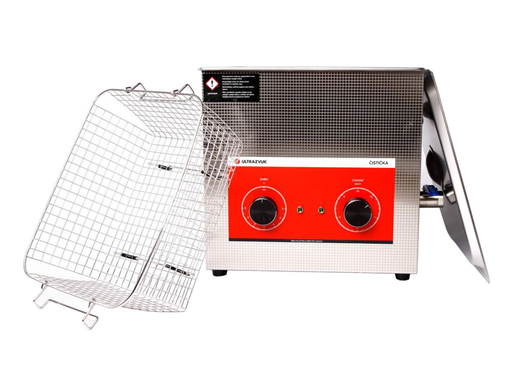 Celonerezová kompaktní čistička řady LABORATORY s ohřevem a časovačem se snadným mechanickým ovládáním, objem 9L. VHODNÉ I PRO ČIŠTĚNÍ CELOOBLIČEJOVÝCH MASEK.