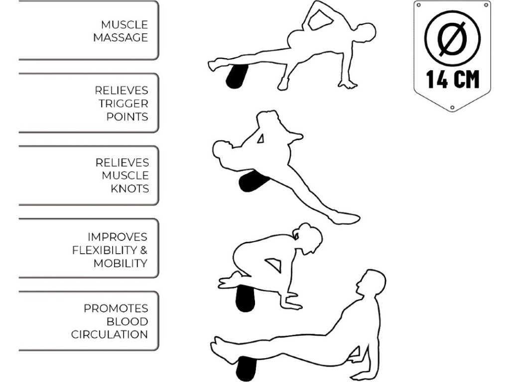 • Hluboká masáž svalů – Speciální výstupky na válci napodobují tlak prstů maséra, čímž poskytují intenzivní uvolnění svalových uzlin a trigger pointů.