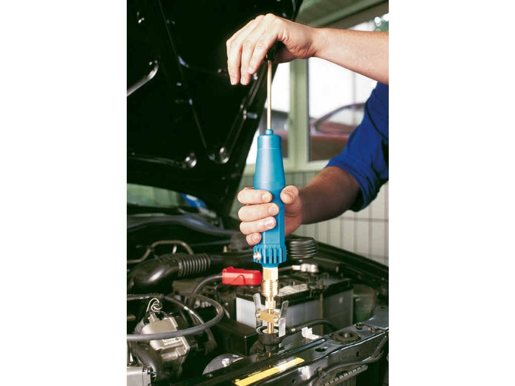 Univerzální adaptér pro kontrolu netěsností v chladicích systémech a topných okruzích.