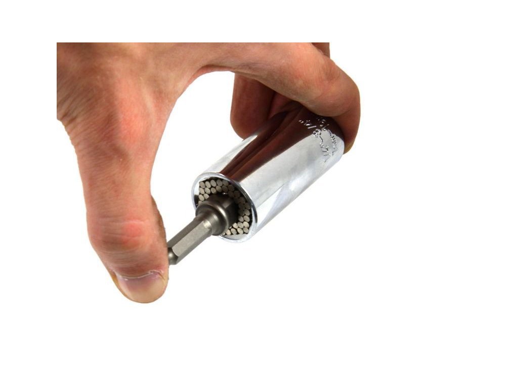Univerzální hlavice, která se snadno přizpůsobí různým tvarům. S její pomocí můžete odšroubovat: šrouby se čtyř a šestihrannými závity, šrouby s okem, křídlové matice, háčky a dokonce i poškozené a zkorodované šrouby. Hlavice byla navržena tak, aby se automaticky přizpůsobila jakékoli velikosti matic nebo šroubů od 7 do 19 mm (1/4 "až 3/4").