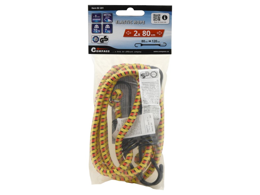 Kvalitní pružné upínače zakončené kovovými háky. Balení obsahuje 2 ks, homologace TÜV/GS.