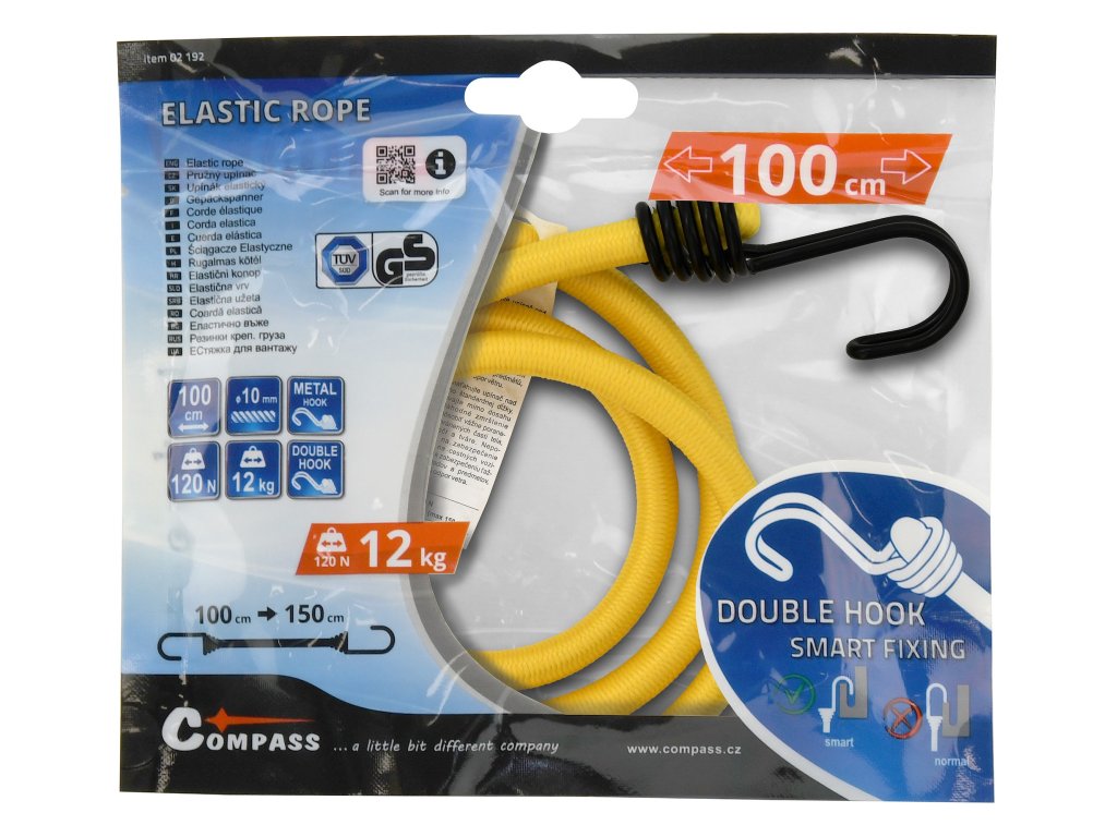 Vysoce kvalitní pružný upínač s homologací TÜV/GS, zakončený dvojitými kovovými háky Smart Fixing.