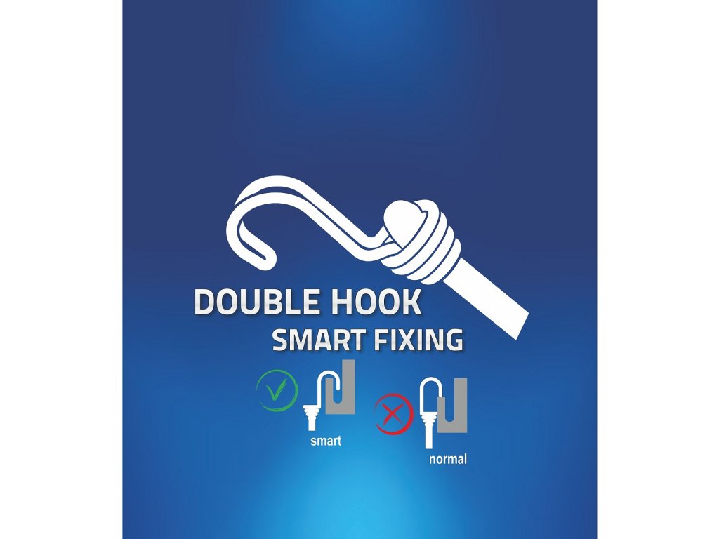 Tento pružný upínač se může chlubit extra pevným jádrem s průřezem o průměru 10 mm, zakončený zdvojenými, kovovými háky SMART FIXING, které se vyznačují tvarem usnadňujícím zachycení na místech, běžně nedostupných pro háky klasické.