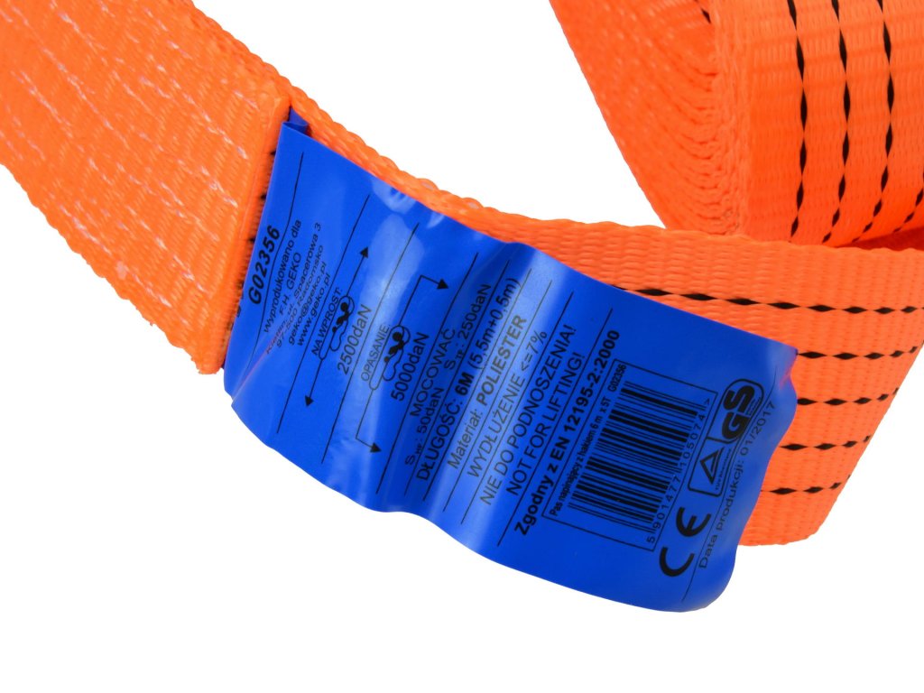 Vázací – upínací pás „kurtna“ s ráčnou a ocelovými háky, délka 600 cm, zatížení 5000 kg – GEKO G02356