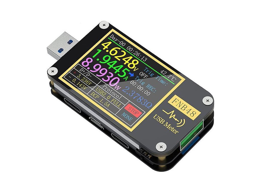 Tester FNB48 je vysoce spolehlivé a bezpečné USB zařízení umožňující měření proudu a detekci protokolu rychlého nabíjení mobilních zařízení.Má 1,77” TFT LCD displej a integrována rozhraní USB-A, microUSB a USB-C.