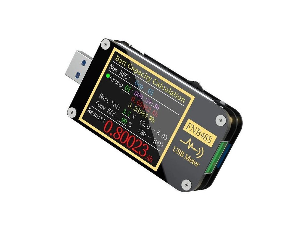 Není osazeno Bluetooth moduleme.USB tester FNIRSI FNB48S je výkonný a multifunkční nástroj pro testování a monitorování USB napájecích portů.Má 1,77” TFT LCD displej a integrována rozhraní USB-A, microUSB a USB-C.