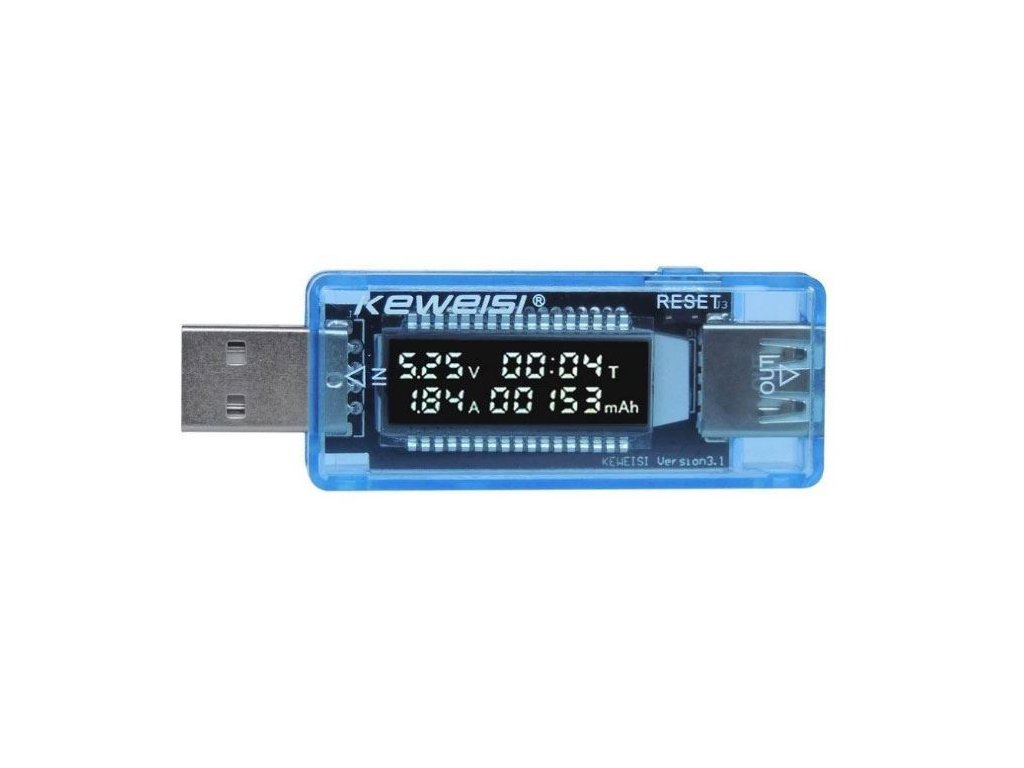 Změří napětí, proud, spotřebu a kapacitu zdroje. Ideální pro zjištění stavu baterie mobilů, tabletů apod, nebo zjištějí stavu nabíječky.Dokáže změřit kapacitu powerbanky nebo jiného zdroje.**Specifikace:**