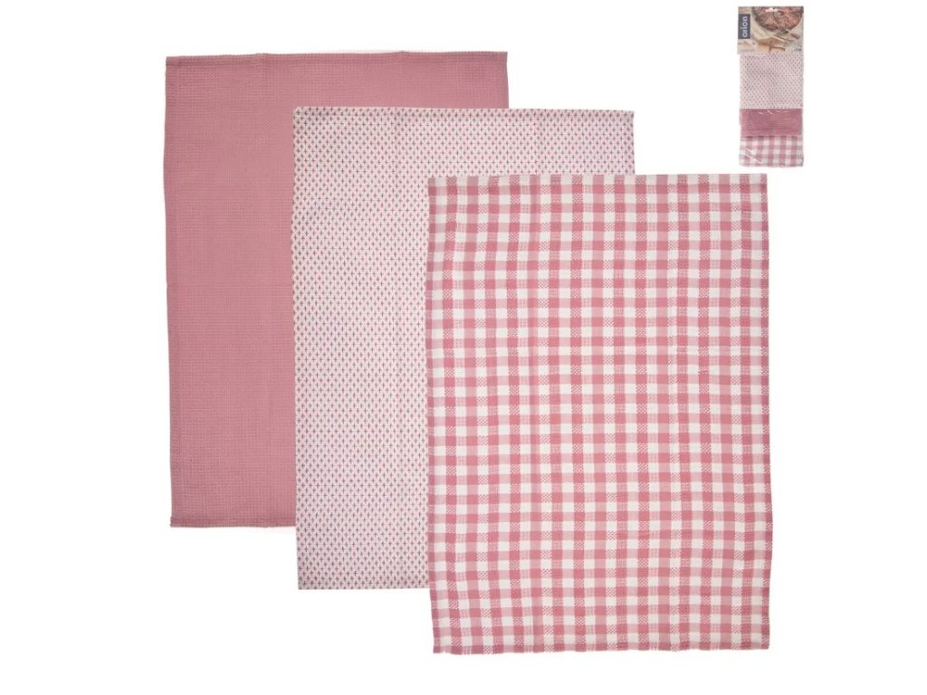 Utěrka kuchyňská bavlna 3ks DEKOR růžová