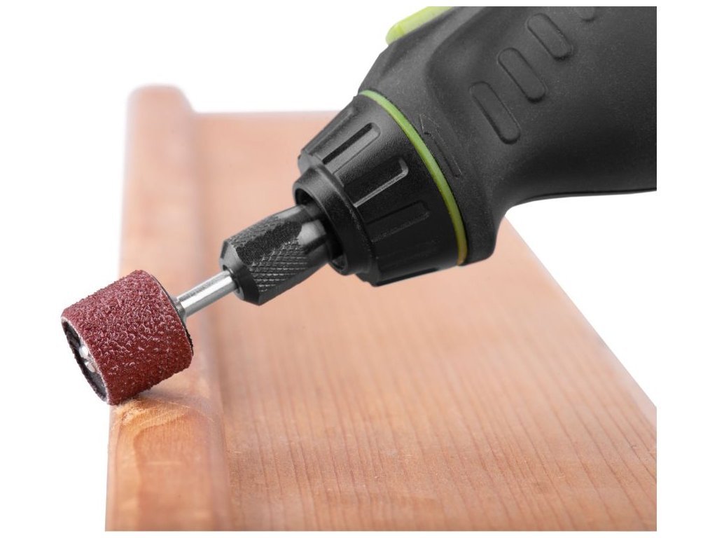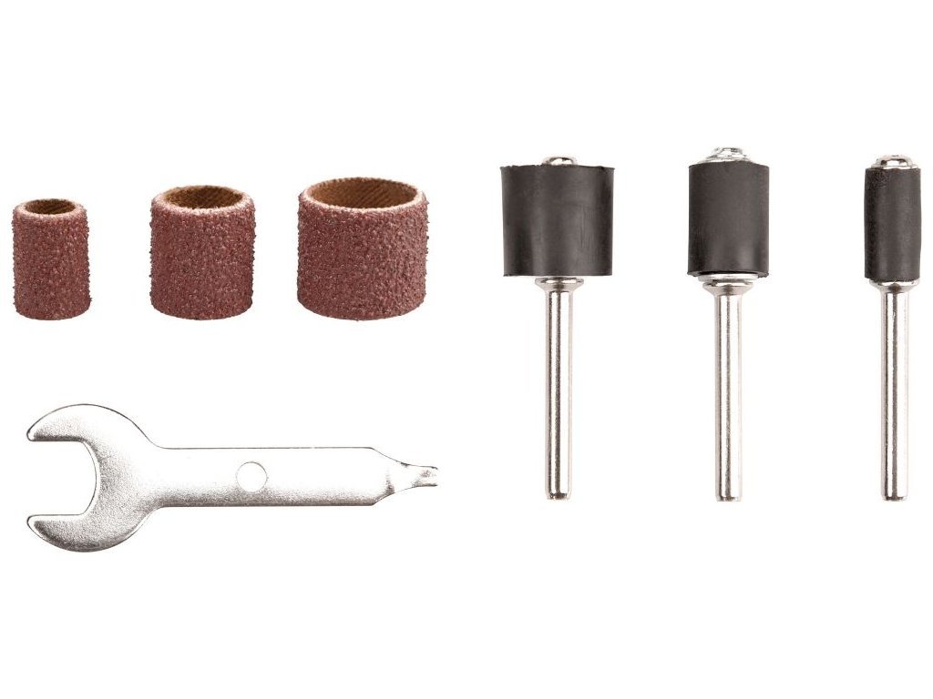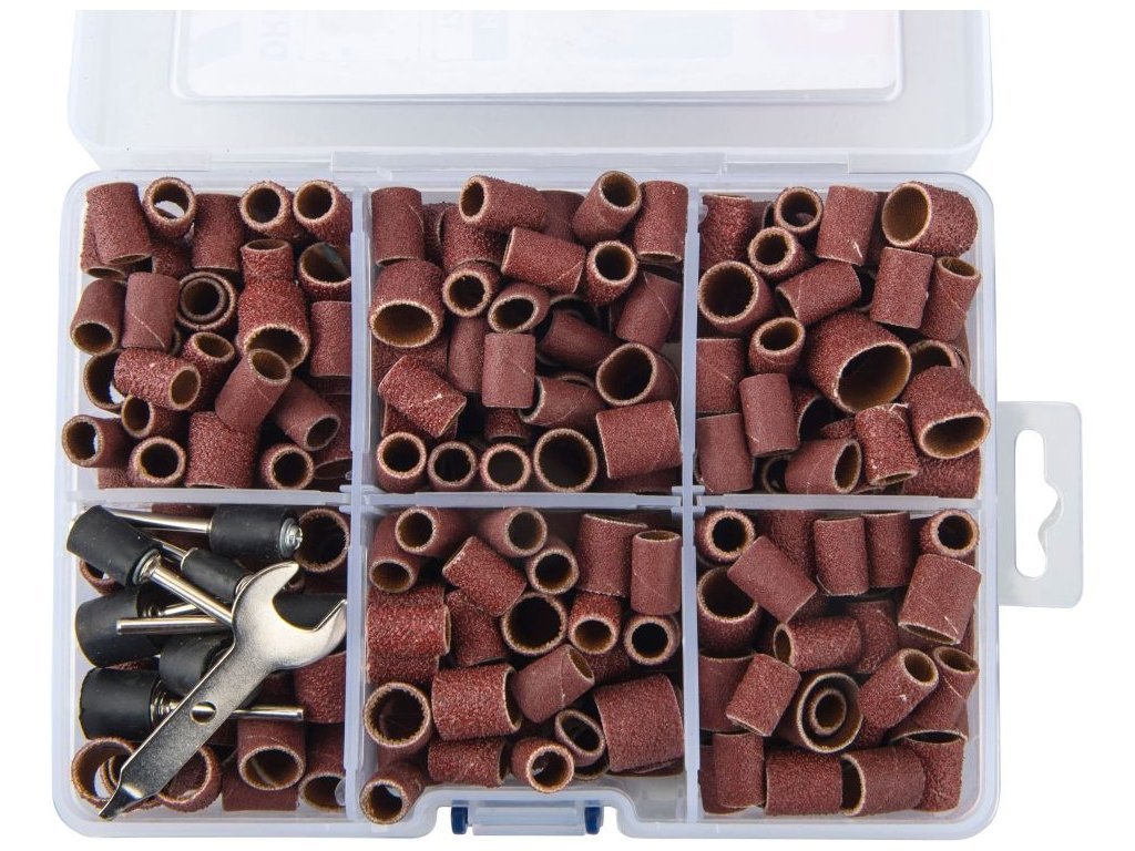 - doplňující parametr: brusné válce: P80 120x, P120 120x, P240 100x, ⌀9-12-14mm x 13mm, unašeč 9x: ⌀6,4-9,5-12,7mm, stopka ⌀3,2mm, plastová krabička s rozdělovači