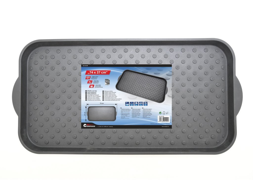Vana je tvořena z odolného plastu o velikosti 74 x 37 cm, je vytvarována se zvýšenými 3 cm okraji, je tak vhodná k umístění do vozu a jeho ochraně při nepříznivém počasí.