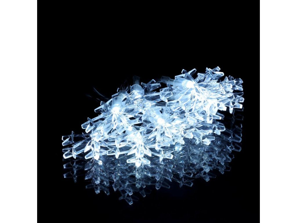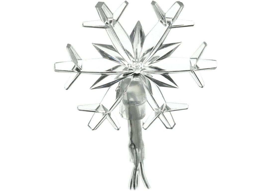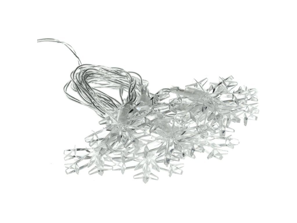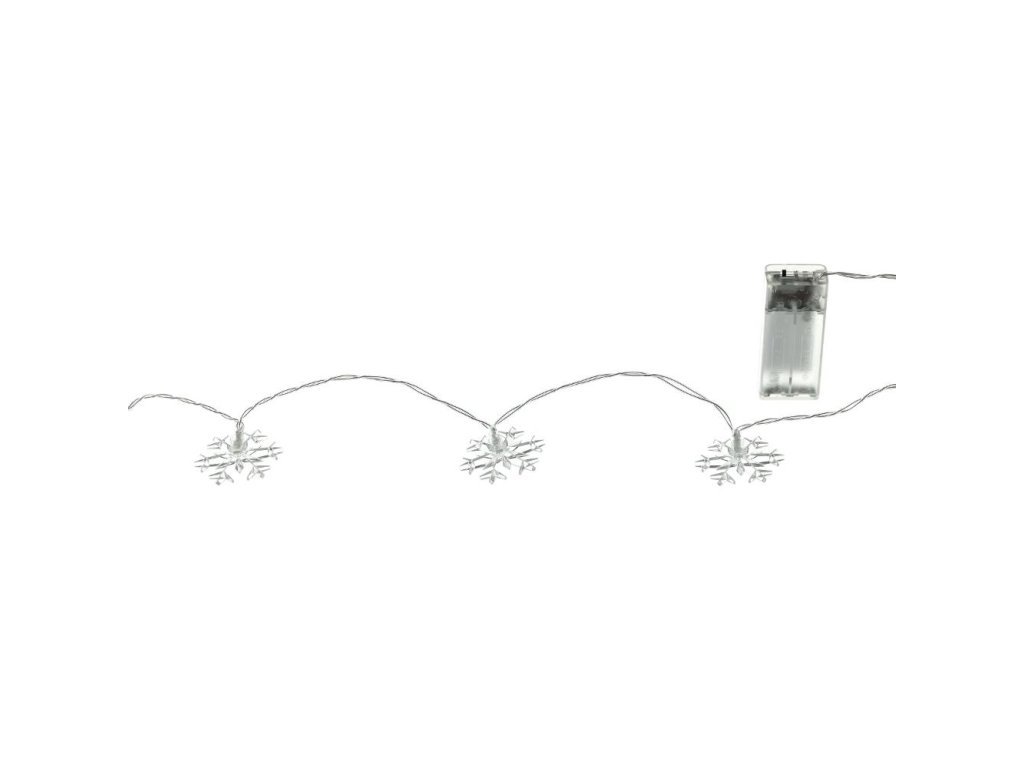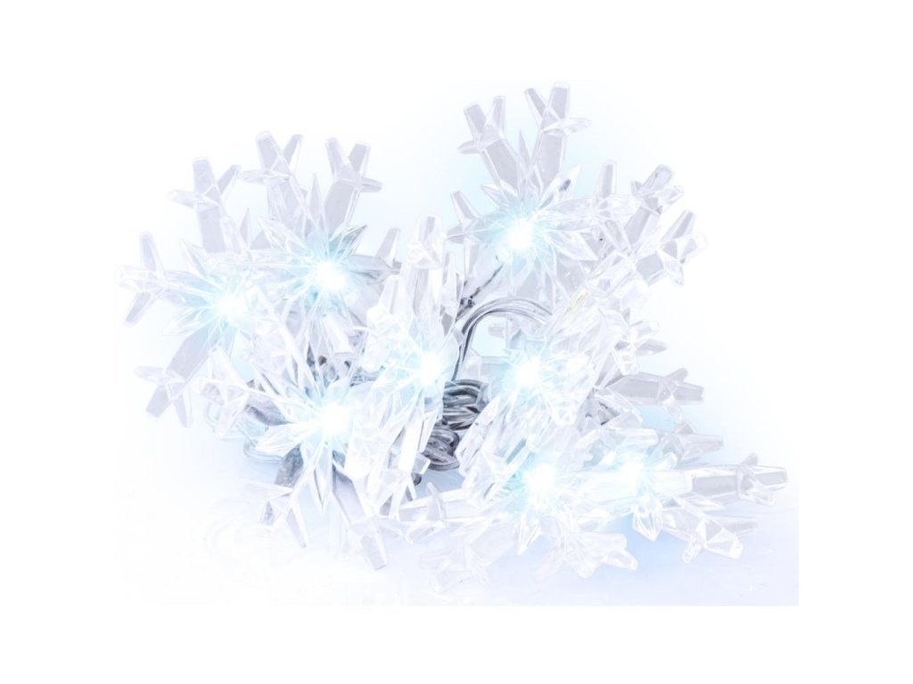 Vánoční dekorace girlanda s vločkami je elegantní světelná dekorace, která vnese do domova pravou zimní pohádku. Girlanda obsahuje 10 plastových vloček o průměru 4,5 cm, každá osvětlená LED diodou se studenou bílou barvou světla. Celková délka osvětlené části činí 1,35 m, přívodní kabel měří 0,3 m.