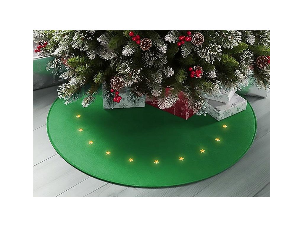 Vánoční koberec pod stromek MagicHome zelený s hvězdami, 22xLED, teplá bílá, časovač, 2xAA, 90cm