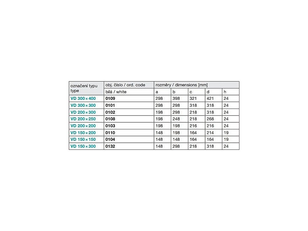 Rozměry: A: 298 mm, B: 298 mm, C: 318 mm, D: 318 mm, H: 24 mm.