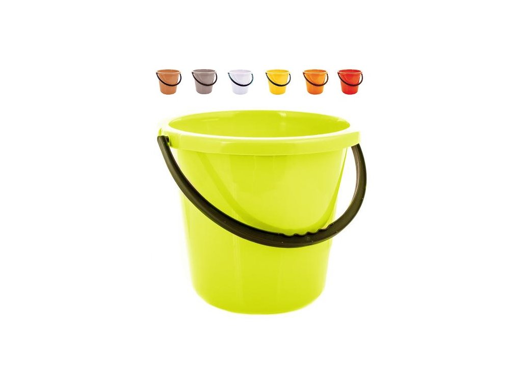 Plastové vědro s uchem tvarovaným pro prsty.Objem 8 litrů, rozměry 29.6 x 27.3 a výška 24.2 cm.
