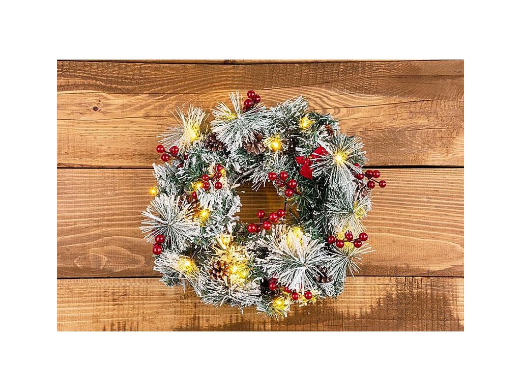 Je to vkusný, přírodní věnec s LED osvětlením.