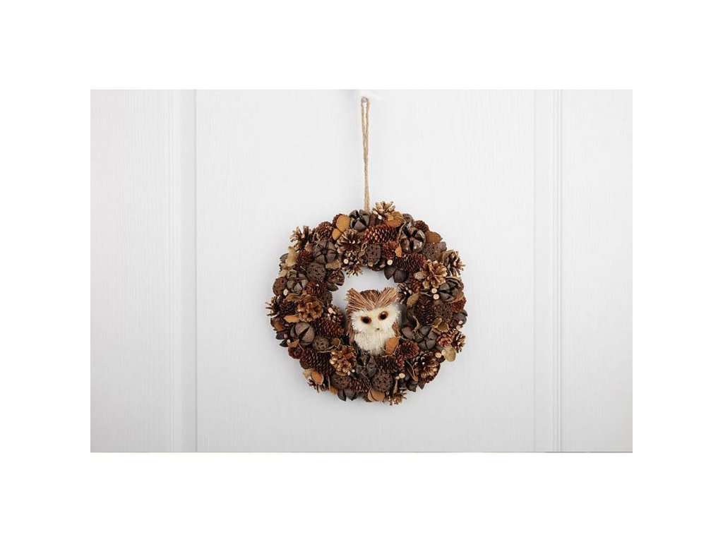 Věnec MagicHome přírodní, závěsný, hnědý, se sovou, 30x8cm