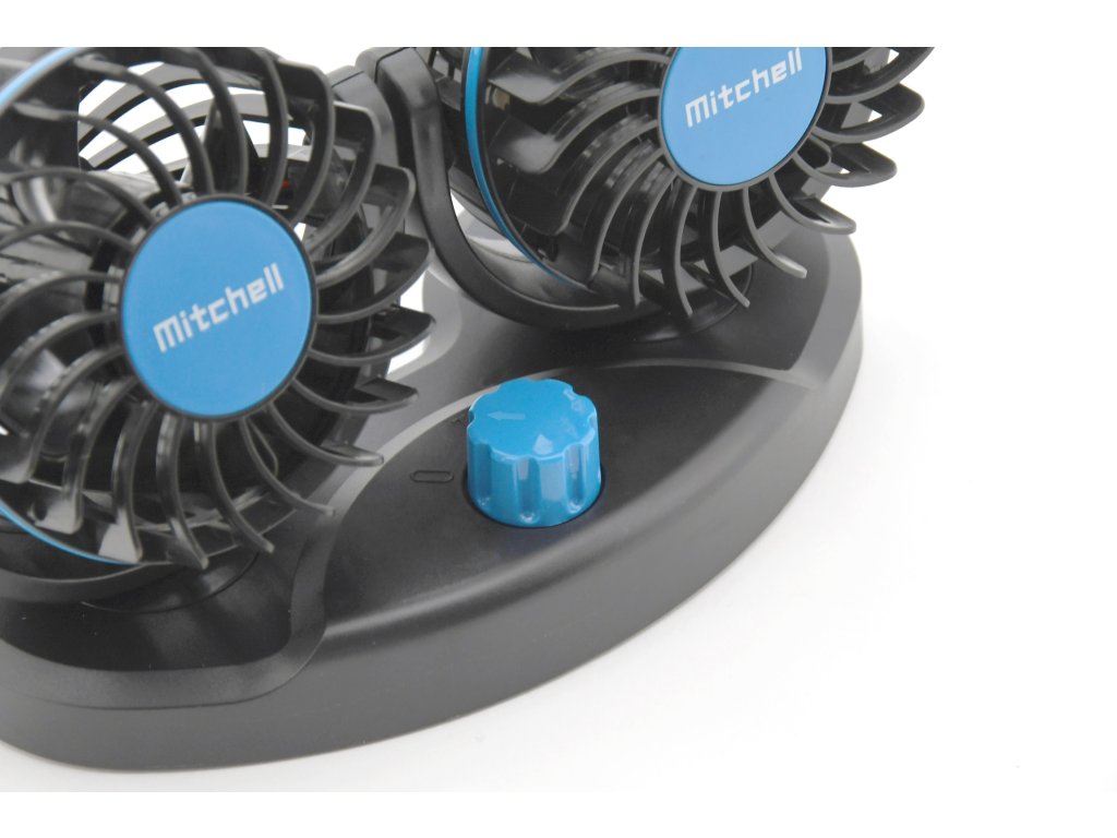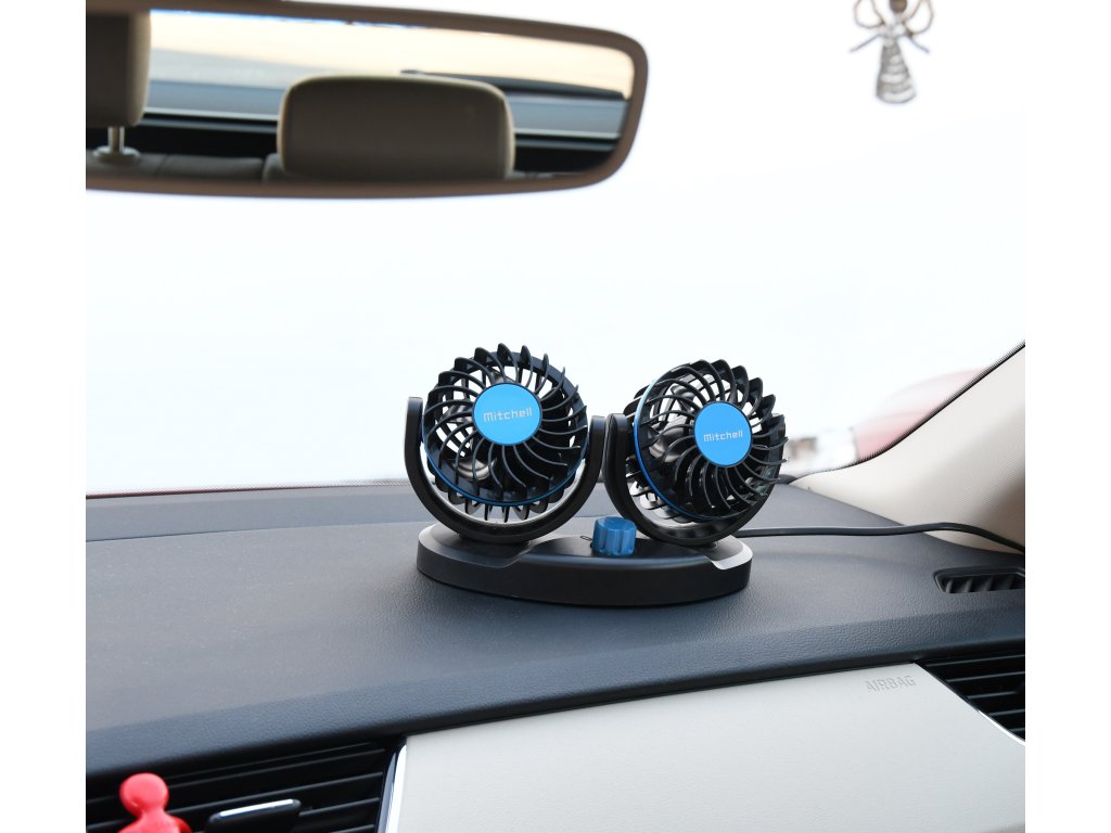 Praktická sestava dvou nastavitelných ventilátorů s robustním stojanem pro upevnění na palubní desku, nebo jiné povrchy.