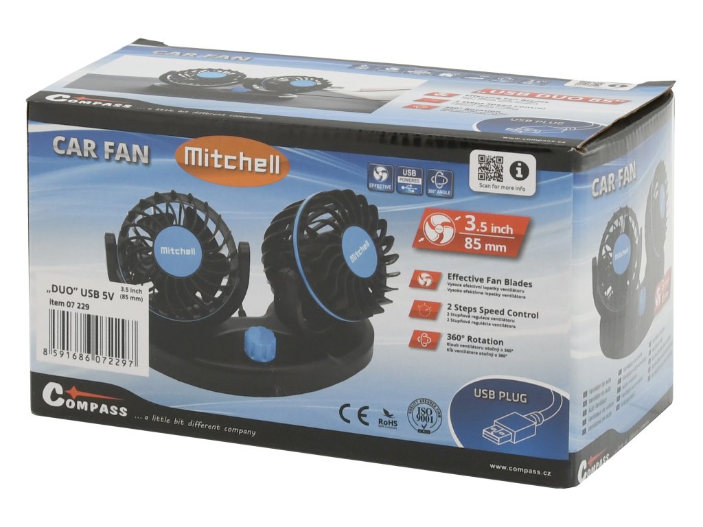 Ventilátor MITCHELL DUO 2x85mm USB 5V na palubní desku