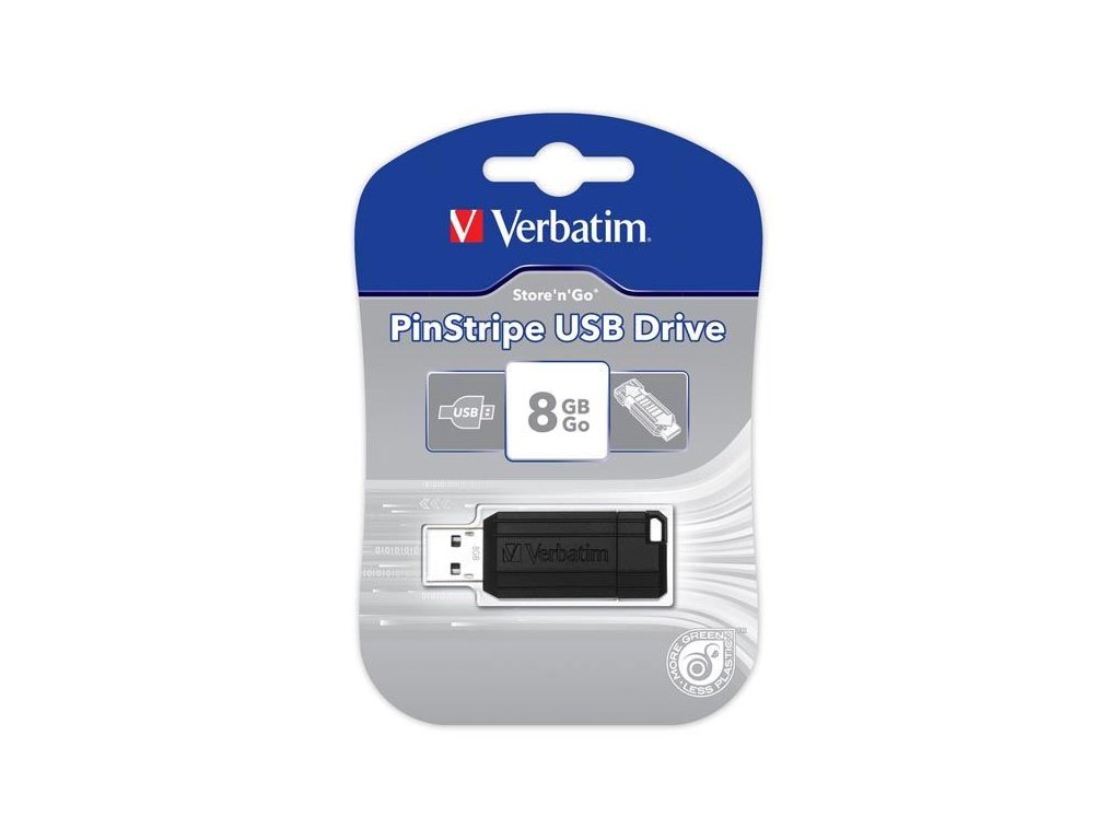 Verbatim USB flash disk, USB 2.0, 8GB, PinStripe, Store N Go, černý USB A, s výsuvným konektoremVerbatim USB flash disk Store'N'Go PinStripe, 8GBJelikož je porty USB vybaven téměř každý počítač a již jsou jimi vybavena také auta, DVD a multimediální přehrávače, televizory, fotorámečky a dalšízařízení, jednotky USB jsou v současnosti považovány za důležité příslušenství.