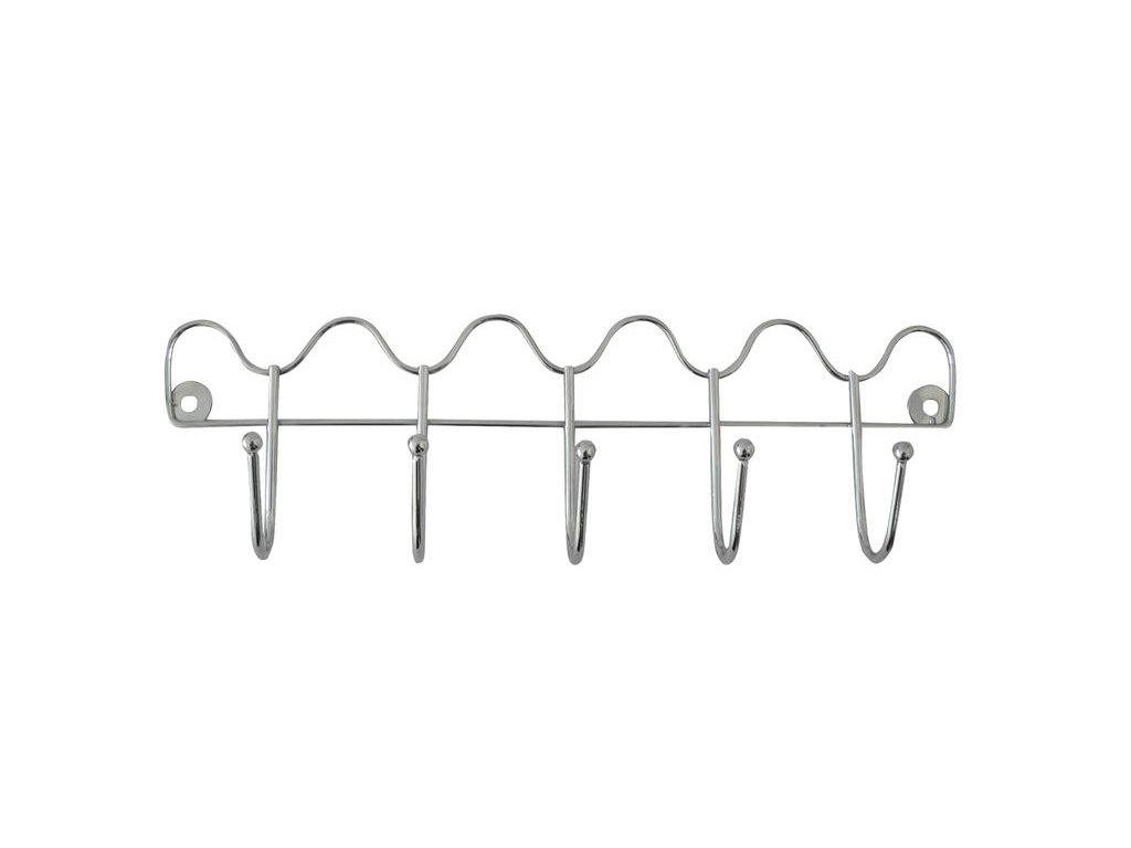 Pochromovaný drátěný věšák s 5 háčky.Tvar vlnky, zakončení háčků kuličkami.