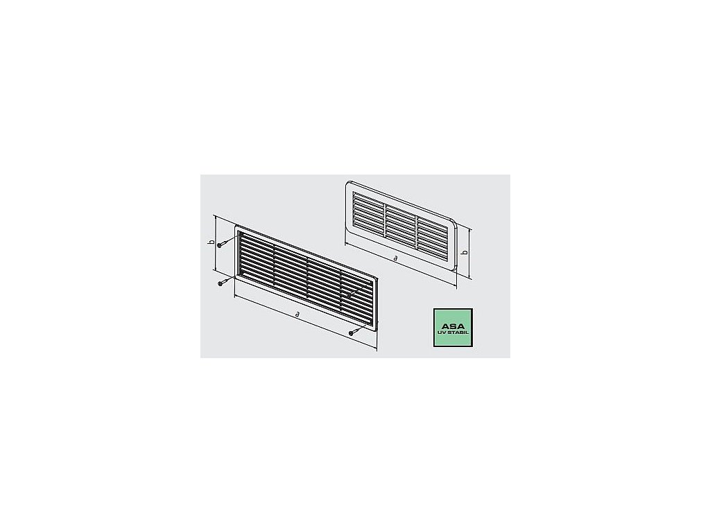 Obsah balení: 2 ks větrací mřížky, vruty a hmoždinky.