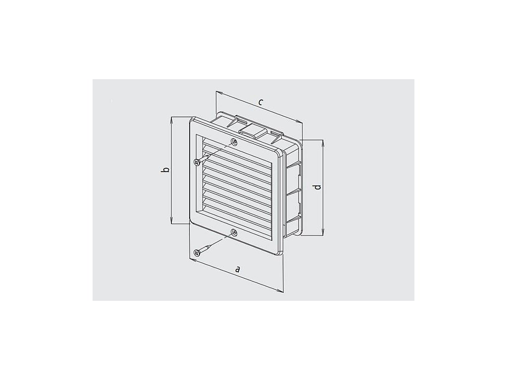 Obsah balení: Větrací mřížka, rámeček, vruty a hmoždinky