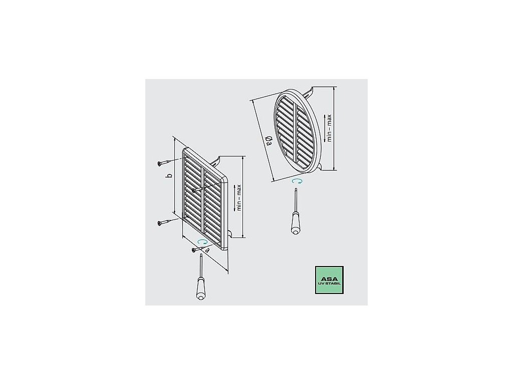 Obsah balení: Větrací mřížka, vruty a hmoždinky.
