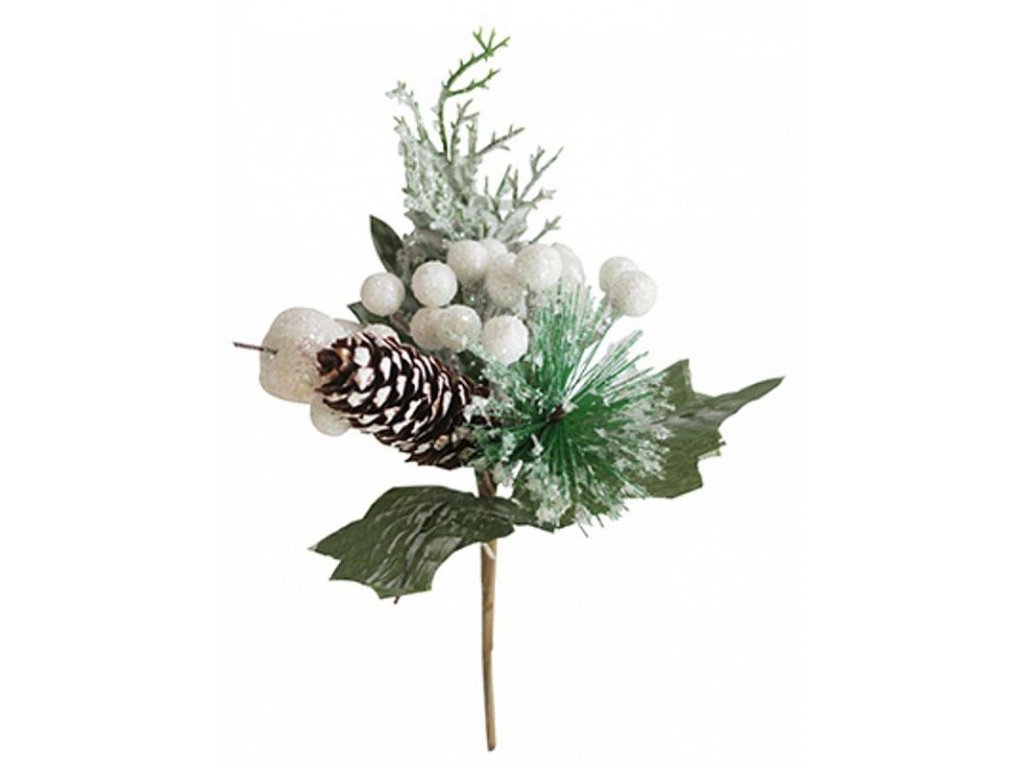 Větvička MagicHome s šiškou bílá, 21cm