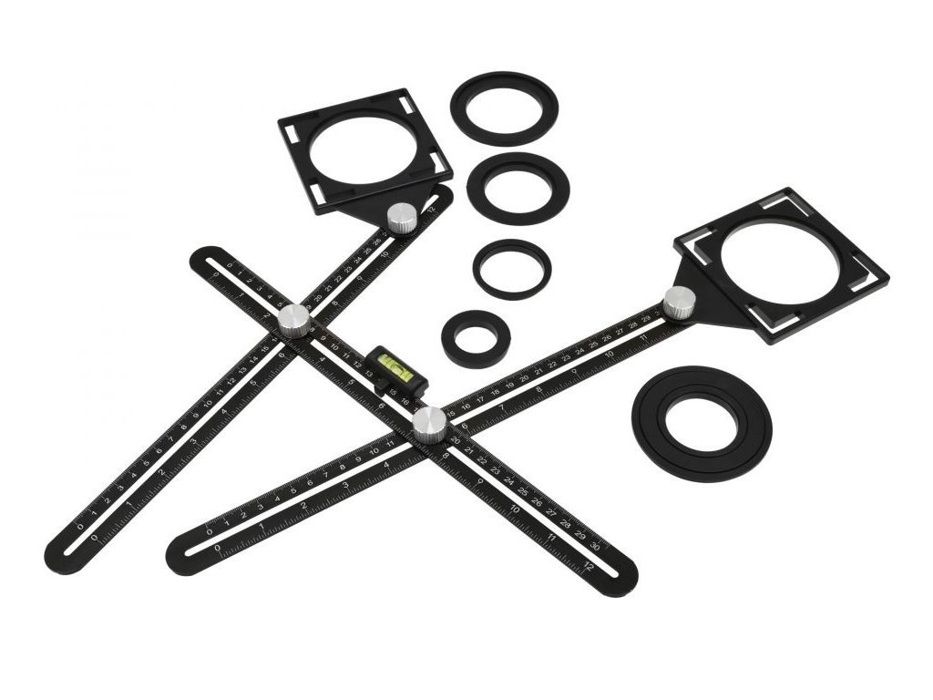 Víceúčelové pravítko je skvělý nástroj pro vytváření složitých tvarů, úhlů a opakovaných řezů. Měření v centimetrech a palcích. Úhlové pravítko se snadno skládá a využívá jedinečný utahovací mechanismus, který zvládnete i jednou rukou. Ideální pomocník pro obkladače, podlaháře a podobné řemesla. Dokonale označí místo pro vyříznutí otvoru v dlaždicích a také reprodukuje asymetrické tvary. Odolné hliníkové pravítko s trvalou stupnicí. Měřidlo otvorů z prvotřídního plastu.