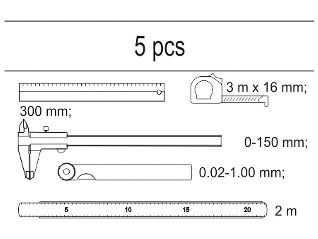 Sada 5 kusů měřidel. Sada je přehledně srovnána ve vložce do zásuvky z PVC.
