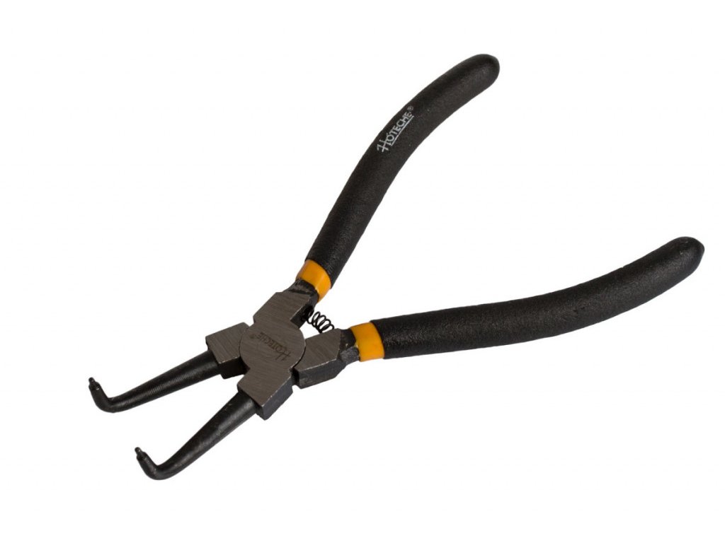 Kleště na pojistné kroužky značky Hoteche o délce 165 mm se zahnutými čelistmi.