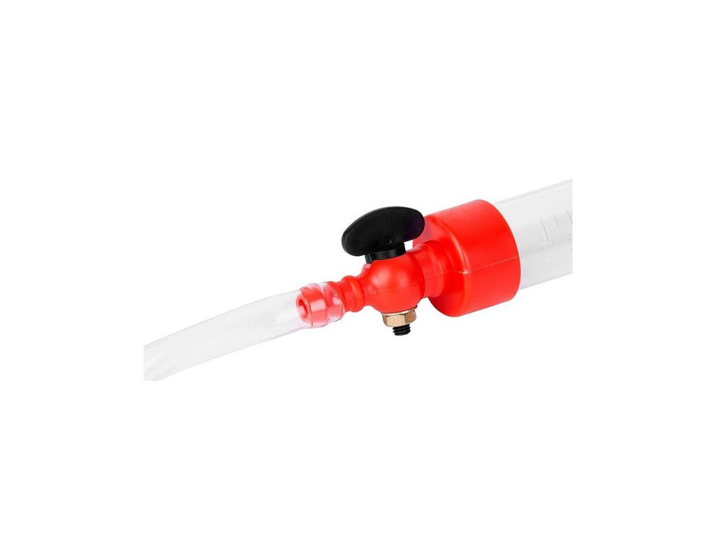 První trubku připevníme k výškovému bodu a druhou pak k místu, kam chceme výškový bod přenést. Víčka se otevřou a druhou trubkou se pomalu pohybuje nahoru a dolů, dokud není hladina vody v obou trubkách stejná.