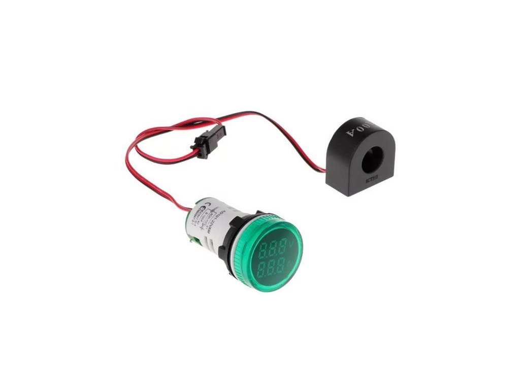 Voltmetr, ampérmetr AD101-22VAM panelový MP 60-500VAC+0-100AAC, zelený