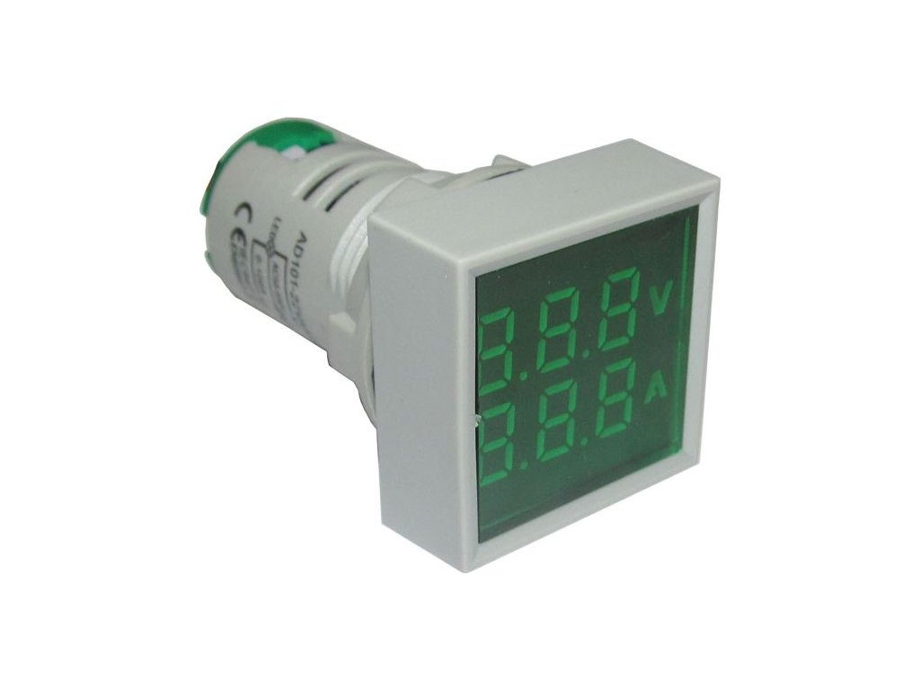 Voltmetr, ampérmetr AD101-22VAMS panelový MP 50-500VAC+0-100AAC, zelen