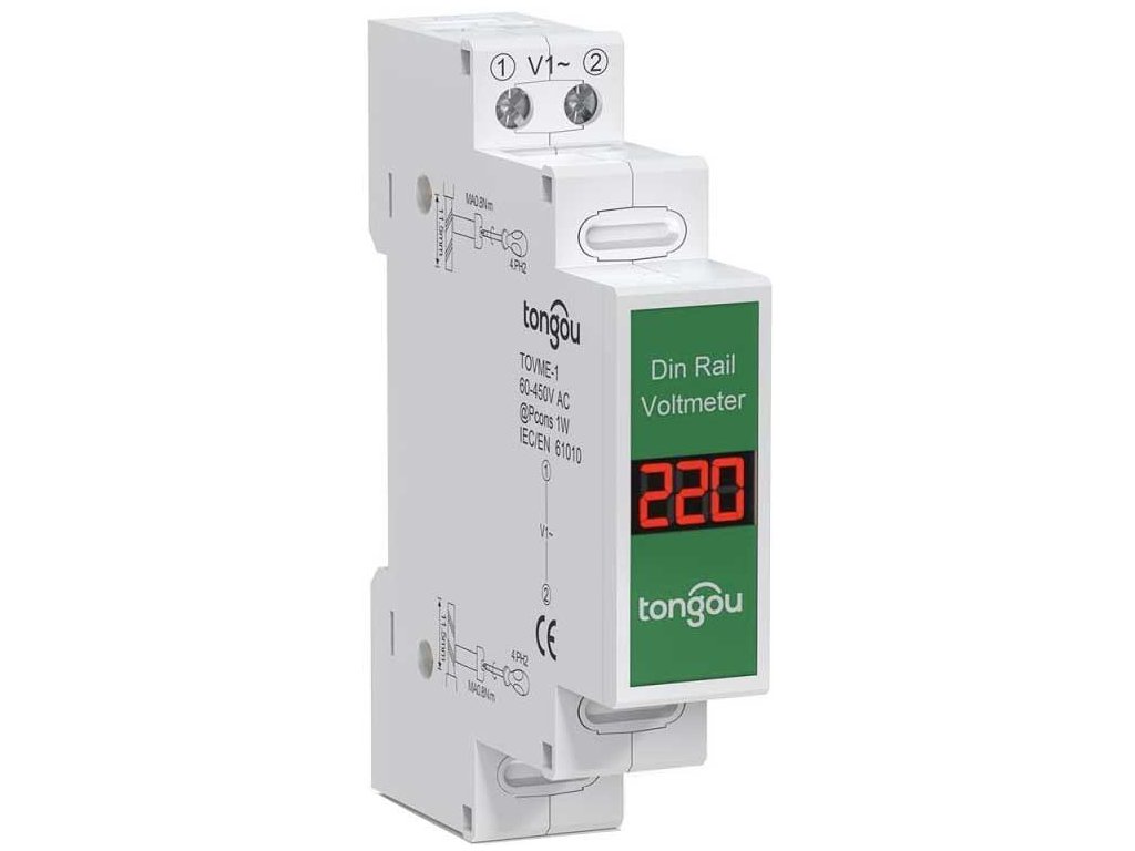Voltmetr na DIN lištu jednofázový TOVME-1 60-450VAC