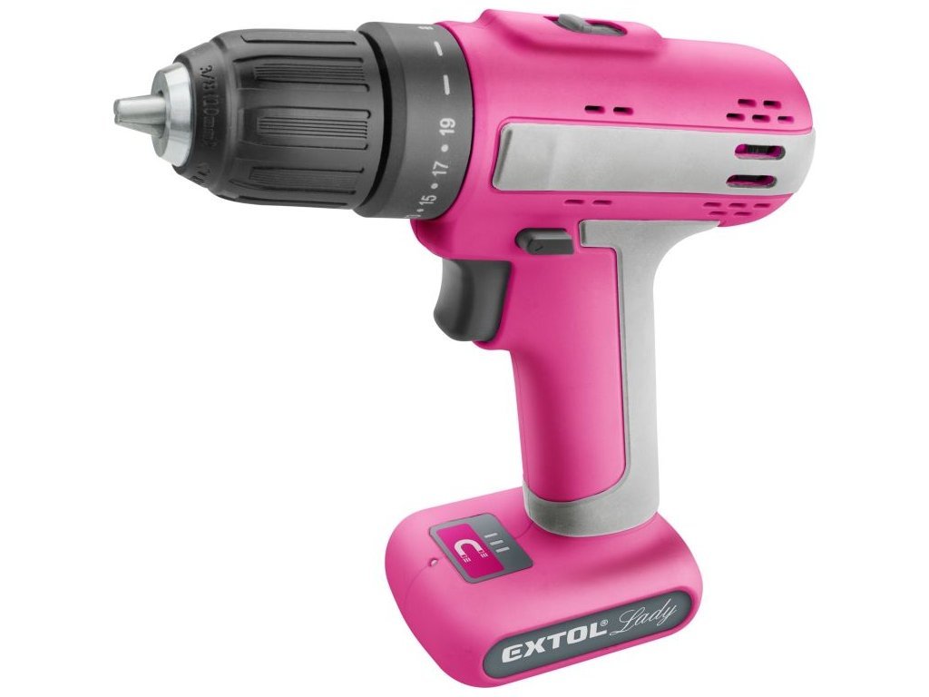 Vrtací šroubovák aku, růžový, 12V Li-ion, 1500mAh EXTOL LADY