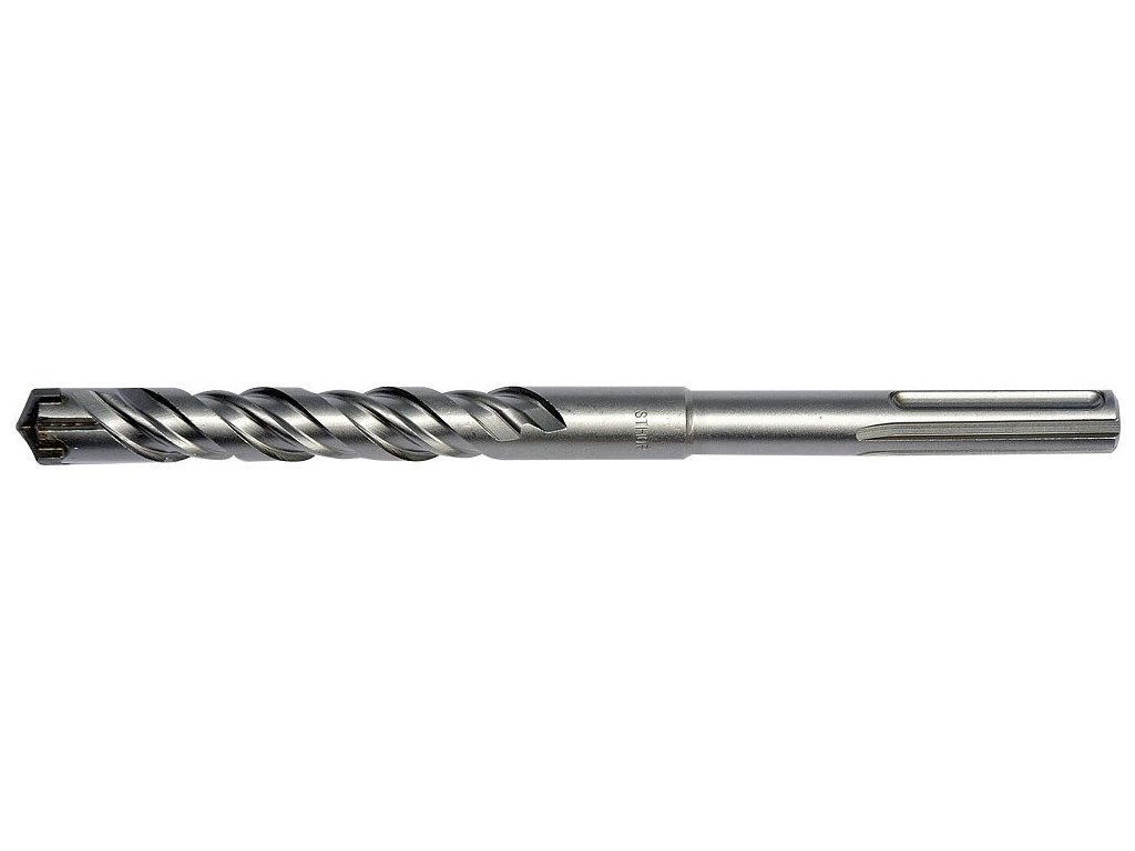 Čtyřbřitý hrot pro jednodušší rovnoměrné vrtání, dvojitá šroubovice pro odvod odvrtaného materiálu.