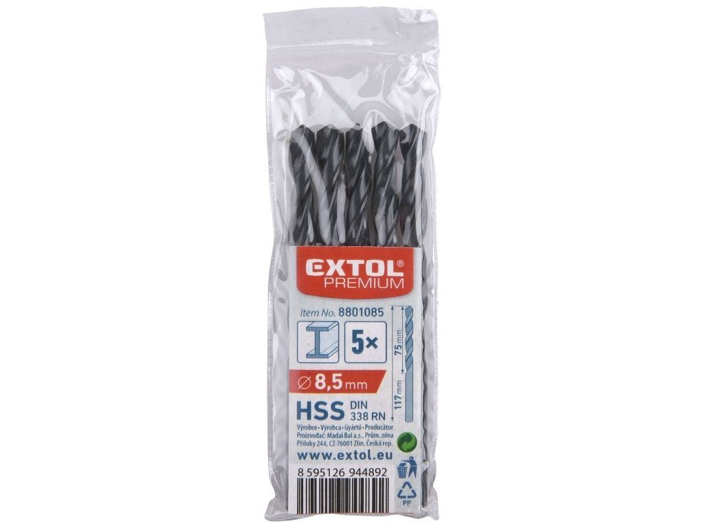 Vrták do kovu HSS, bal 5ks, O 8,5 L-117 L1-75, HSS, EXTOL PREMIUM