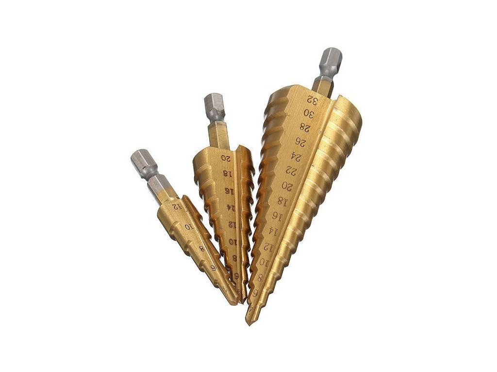 Vrták stupňovitý, sada 3ks, 4-12mm+4-20mm+4-32mm