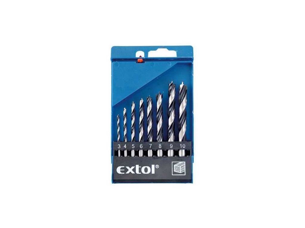 Vrtáky do dřeva, sada 8ks Ř3-4 -5-6-7-8-9-10mm, leštěné EXTOL CRAFT Šroubovitý vrták je určen pro vrtání s vysokým nárokem na přesnost děr menších průměrů a s malou hloubkou. Vhodný zejména k vrtání tuhého dřeva, dřevotřískových a dřevovláknitých desek.Doplňkové parametry