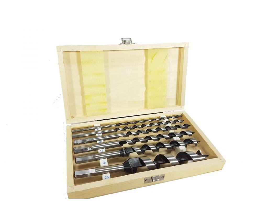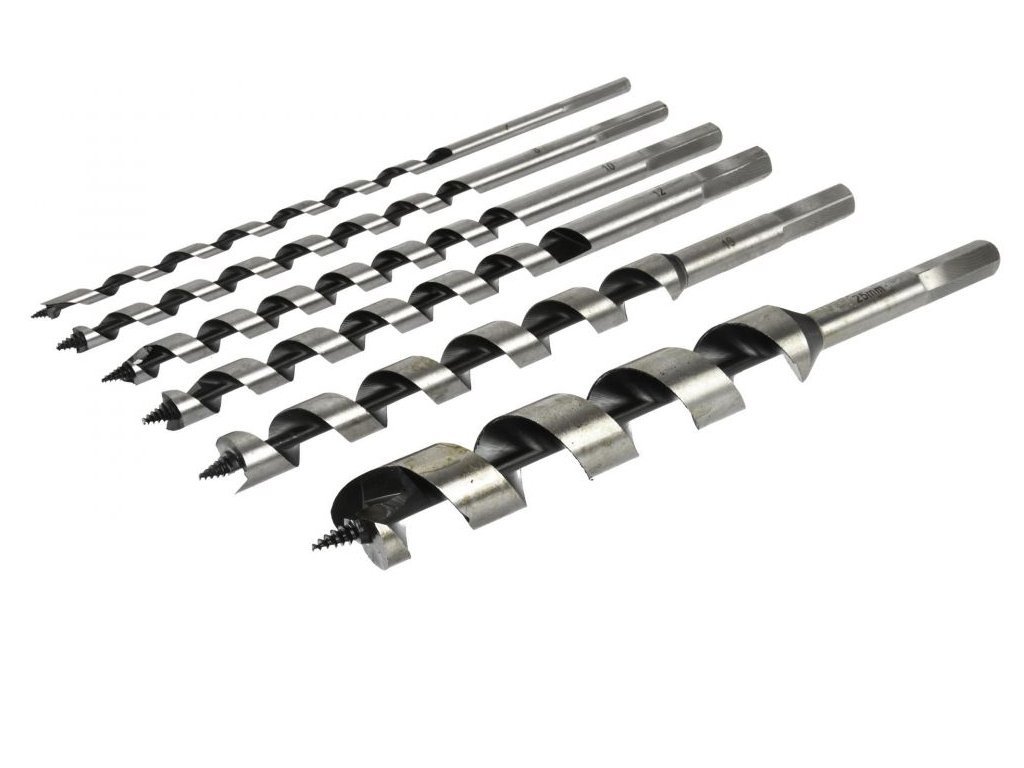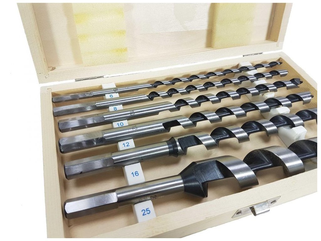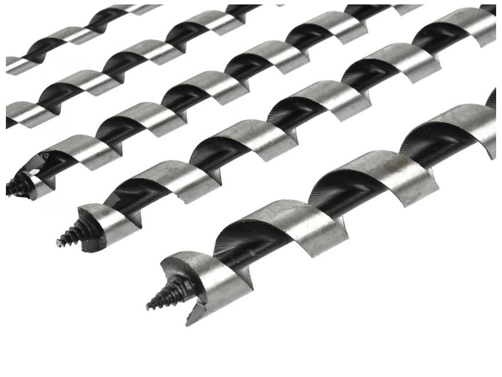 Sada hadovitých vrtáků pro vrtání hlubokých otvorů do měkkého, tvrdého dřeva, trámů, příčníků, lepených vazníků. Vrtáky mají středící hrot se závitem pro přesné vrtání.Vrtáky mají středící hrot se závitem pro přesné vrtání. Kalené hlavní a pomocné břity zvyšují životnost vrtáku, zatímco Lewisova spirála zajišťuje rychlý odvod třísek. Vhodný je také pro vrtání otvorů pro válcové čepy a pro předvrtání otvorů pro spojování krokví.