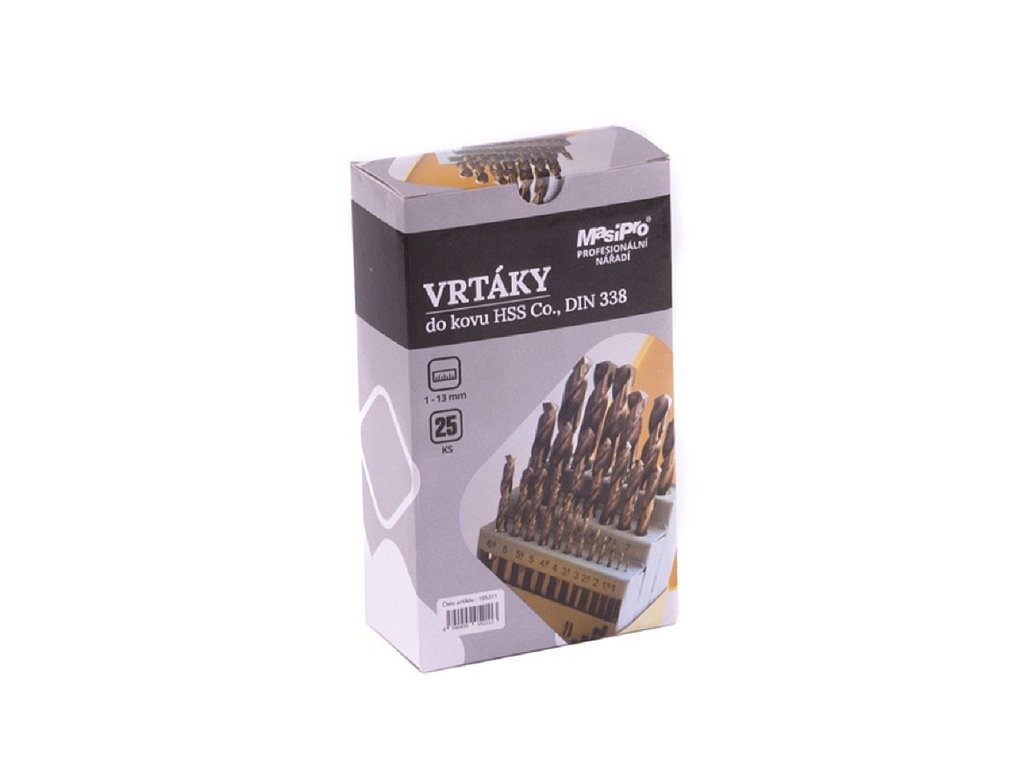 Vrtáky HSS Co 5% do kovu 1-13mm, sada 25ks