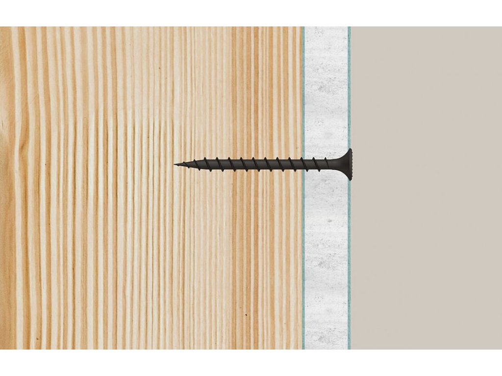 Fischer páskovaný vrut do sádrokartonu s hrubým závitem FSN-TPRM-F pro rychlé a bezpečné upevnění sádrokartonových a sádrovláknitých desek na dřevěné sloupky.