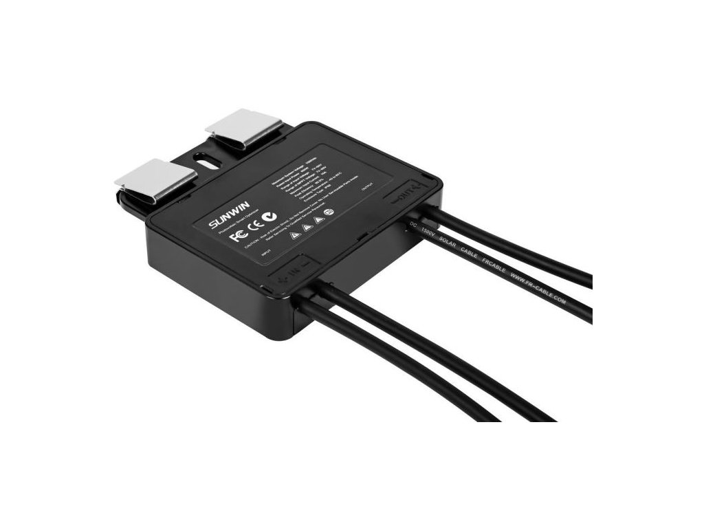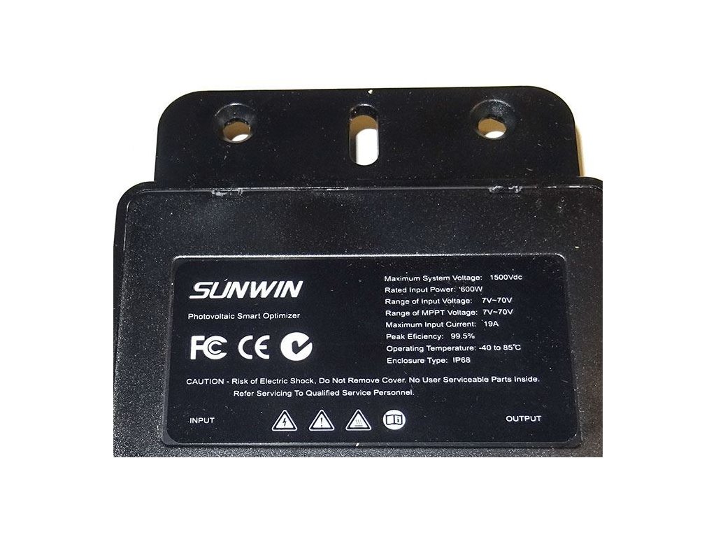 Výkonový optimizér SUNWIN 600W Pomáhá optimalizovat výkon celé soustavy panelů při částečném zastínění nebo rozdílném výkonu jednotlivých panelů. Plně kompatibilní s optimizéry Tigo nebo Huawei.**Hlavní parametry:**