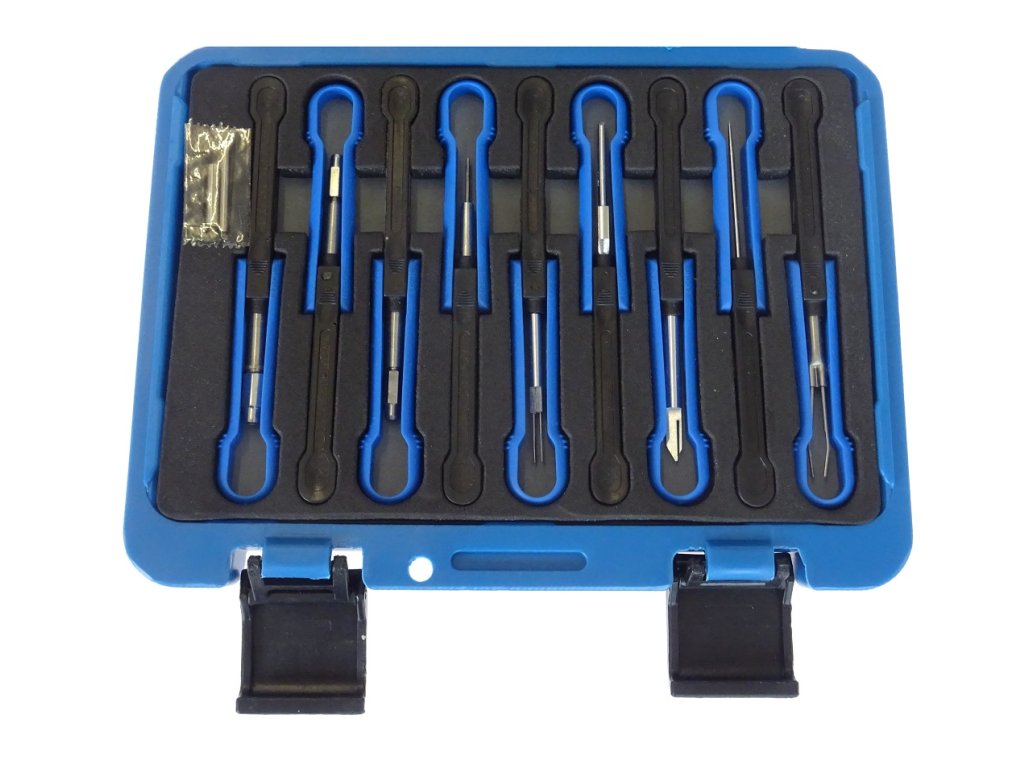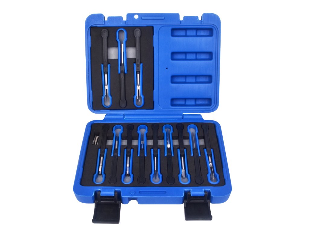 Sada vypichováků na elektrické konektory, 15 dílů v plastové kazetě – QUATROS QS14946Univerzální souprava pro snadné a rychlé rozpojení konektorů (pinů) v elektrických systémech většiny vozidel na našich silnicích.