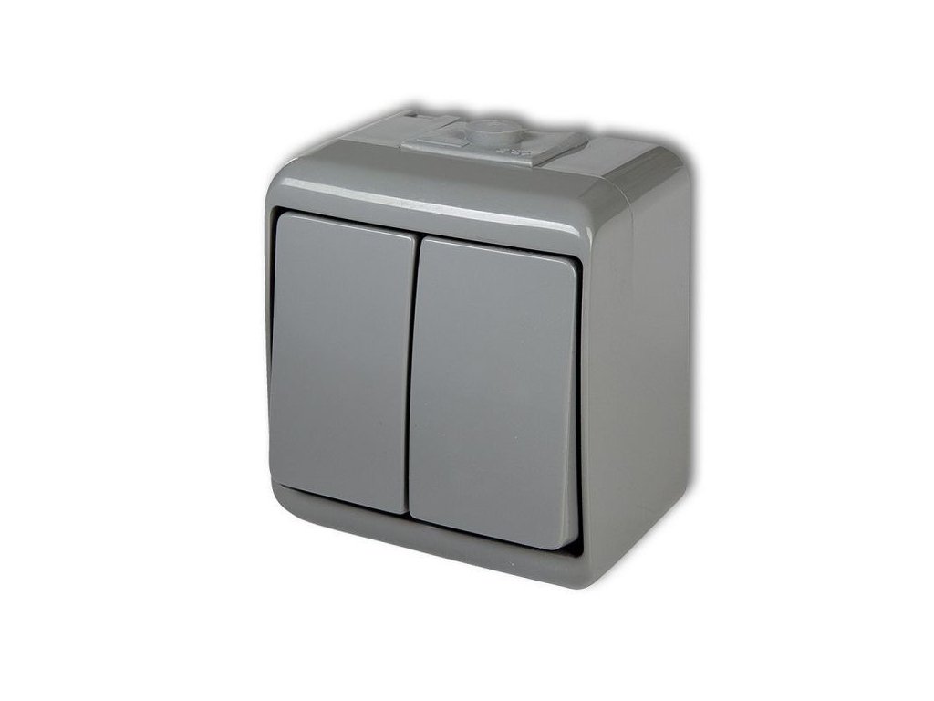 Vypínač dvojitý č.5 nástěnný, IP54, šedý, Karlik