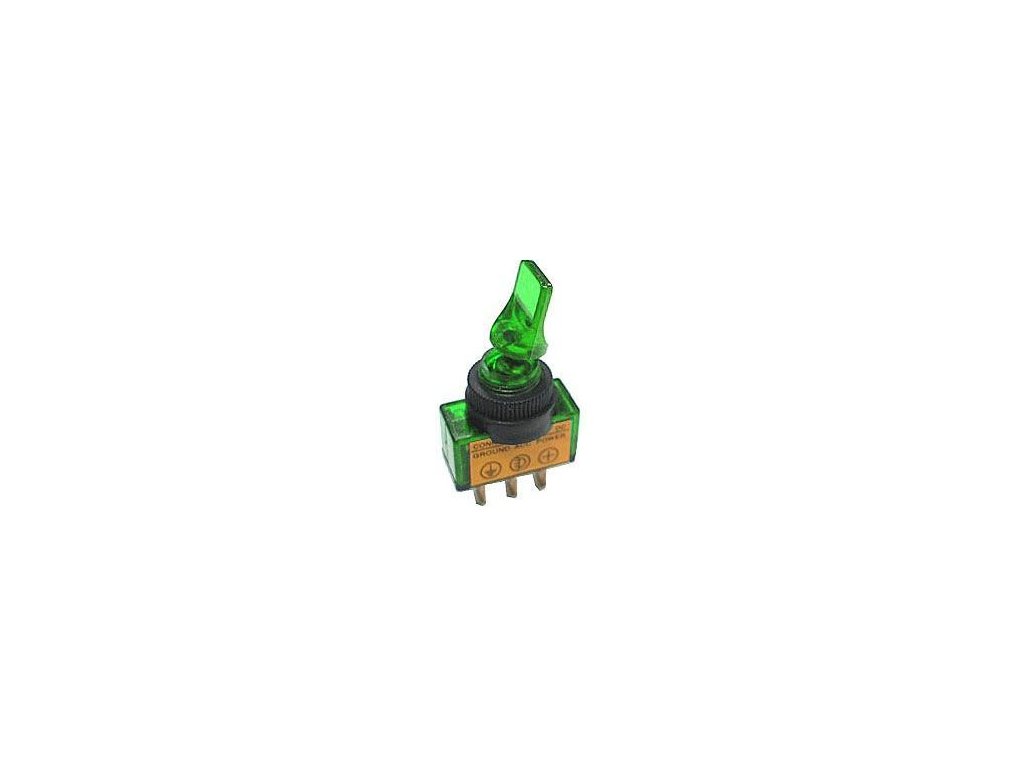 Vypínač páčkový ASW-14D, ON-OFF 1pol.12V/20A zelený, prosvětlení 12V