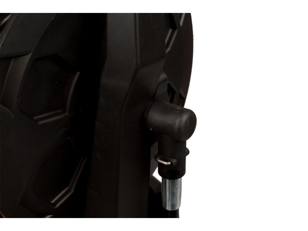 Pevné madlo a celoplastová kolečka usnadní dopravení vysokotlakého čističe na potřebné místo. Tlaková hadice je navinuta na manuální naviják s klikou, který je umístěný v konstrukci madla a hadice tak nijak nepřekáží. Hadice je vedena od vývodu v těle myčky do boku navijáku a pak středem navijáku do 5 m tlakové hadice, která přívodní k tlakové pistoli a je zakončena rychlospojkou, takže doporučujeme při uskladnění odpojit (pozor - dodržujte pokyn pro rozebrání - po vypnutí vapku "odtlakujte") od stříkací vysokotlaké pistole a hadici navinout celou, uspoříte tak trochu místa navíc.