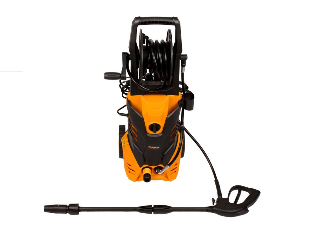 Vysokotlaký čistič je vyroben z kvalitního pevného matného plastu a skládá se z těla vapky, transportního madla s navijákem vysokotlaké hadice, kolečky a vysokotlaké pistole.