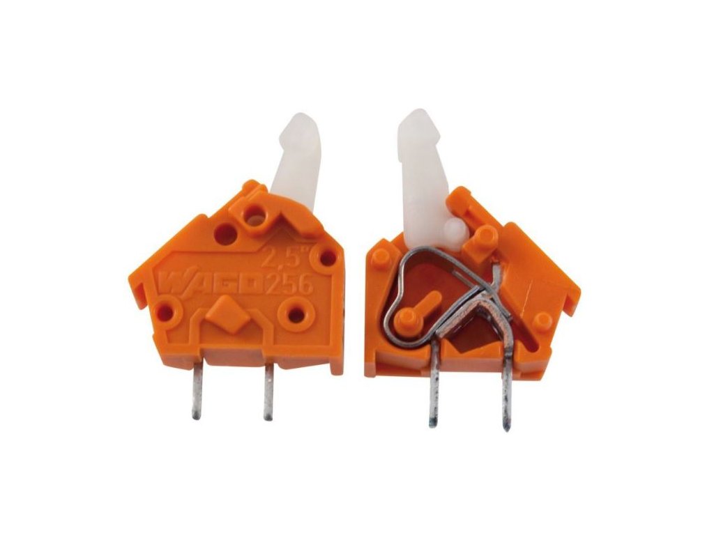 WAGO 256-746 svorkovnice 1pól, rozteč 5,08mm, 24A/320V, vstup 45° Montáž pružinaRozteč vývodů 5,08 mm